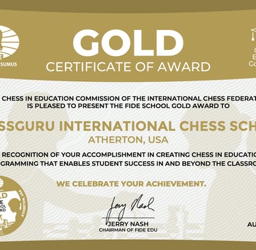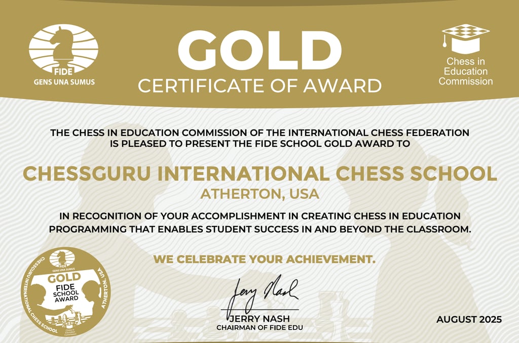 Out of nearly 100,000 chess programs worldwide, ChessGuru is honored to receive the FIDE School Award – Gold, recognizing our innovation, global impact, and commitment to making chess accessible for all. We are proud to be the first-ever student-run chess program to earn this prestigious international distinction. Along with the award, ChessGuru has been granted over 500 premium ChessKid accounts and numerous chess supplies for every one of our chapter schools: resources that will directly empower our students and communities. This achievement belongs to every player, mentor, and partner who has made ChessGuru what it is today.